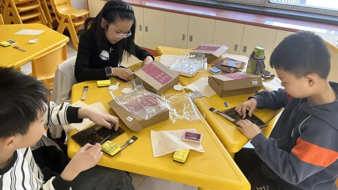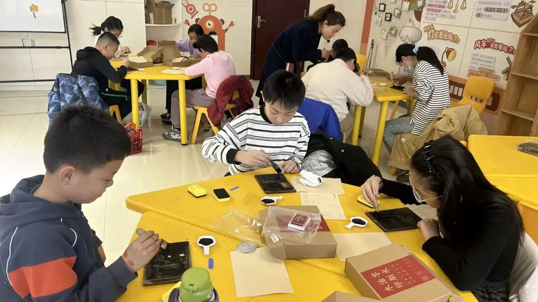 最后,辅导员老师将活动重点聚焦于印刷技艺的实践体验。在了解雕版与活字印刷的发展历程及其对文化传播的重要意义之后,青少年进入“实践工坊”,亲身体验印刷制作的全流程。大家运用特制的爱国主义主题雕版及经典诗词活字模块,认真进行拣字、排版、上墨、拓印等操作,最终每人都成功完成了属于自己的印刷作品。并将自己的作品进行展示与分享,青少年积极交流参与活动的感受,在动手实践中切实增强了对传统文化传承的认同感与自信心。