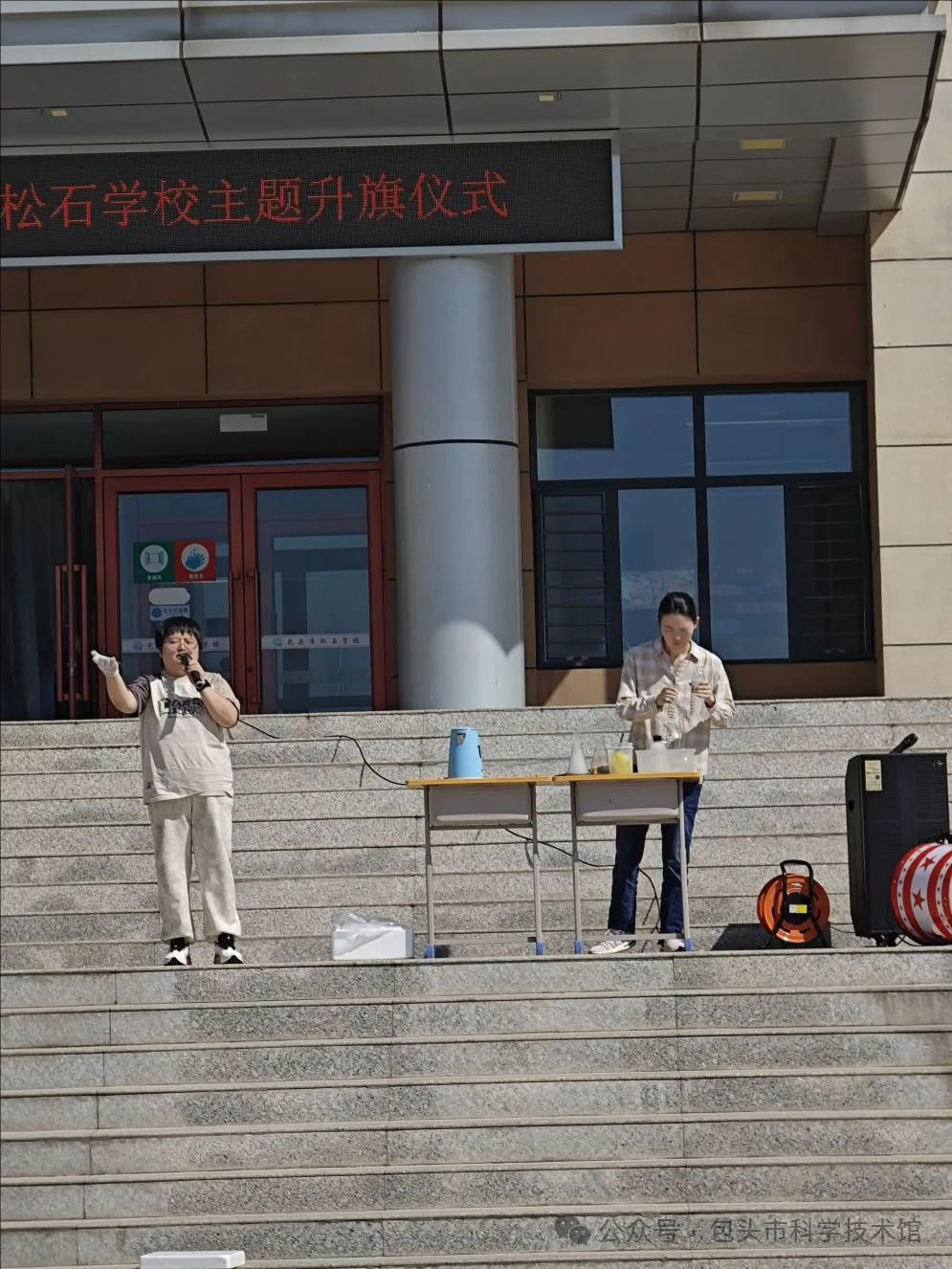 恰逢首个“全国科普月”活动,这一特殊时刻为开学典礼增添了别样的科学氛围。来自市科技馆的科学副校长刘佳婧为全校师生精心准备了一场精彩绝伦的科学实验秀,这份别具一格的“开学礼物”,瞬间点燃了同学们的热情。